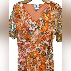 Beautiful flowy, floral and paisley pattern, lined, side tie, tea length.