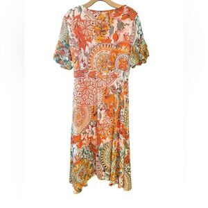 Vicky and Lucas Sz M Orange Paisley Ruffle Side Tie Cottagecore Liberty Dress