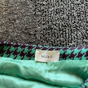Vicolo Green Houndstooth Tweed Mini Skirt