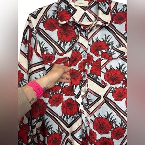 Vicolo Quiet Luxury Floral Button Long Sleeve Lightweight Open Back Blouse