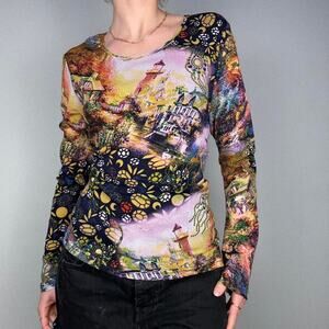 Whimsical mesh fairycore long sleeve top graphic mesh - size large from Vicolo
