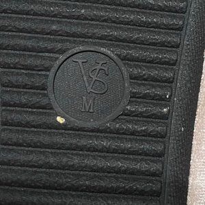 Gorgeous velvet faux fur slippers with silver glitter V. Size medium can fit size 7/8.