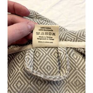 Warm grey diamond geometric pattern with cream stripe on the bottom.