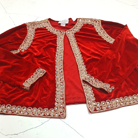 Victor Acosta Red Velvet Embellished Jacket, 1X , pre-owned excellent condition