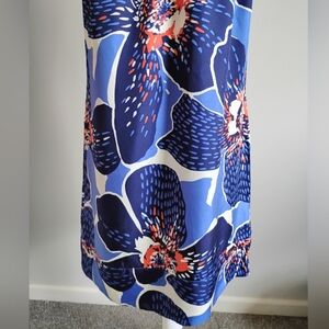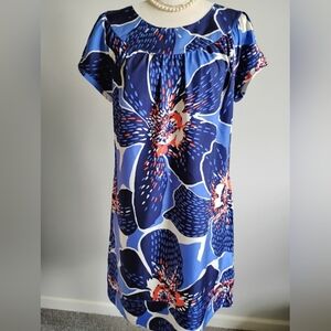 Victor Alfaro 100% Silk Navy Blue Floral Shift Dress Colorful Day Evening Sz 10