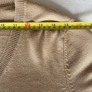 Victor Alfaro 100% wool tan classic v-neck sweater buttons at wrist