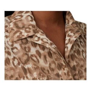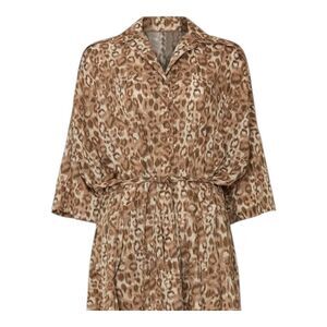 A Victor Alfaro dress from Rent the Runway. This brown animal print shirt dress is suitable for dress or casual and can also be used for loungewear or a swimsuit coverup.