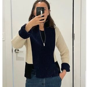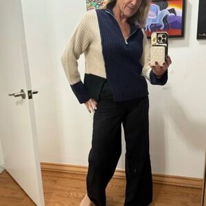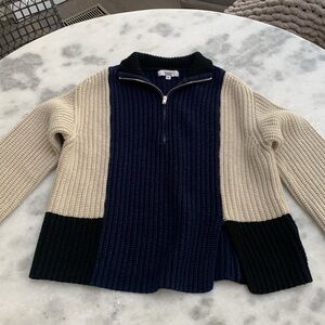 Victor Alfaro Colorblock Half-Zip Sweater – Black, Blue & Off-White – Size Medium oversized but could fit a large
