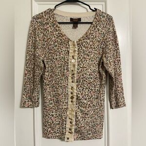 Victor Alfaro women's small button detail animal print cardigan 3/4 sleeve