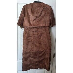 Victor Costa 2-Piece Sheath Dress Jacket Sz 4 Brown Shimmer Beaded Semi Formal