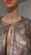 A lightweight jacket with a metallic finish in a silvery-taupe color, featuring a round neckline.It fits like medium