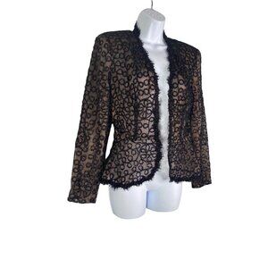 Victor Costa For Nahdree Womens Vintage Evening Jacket Beige Black Scrolled 6