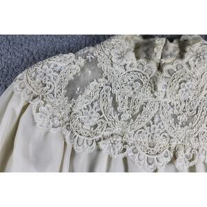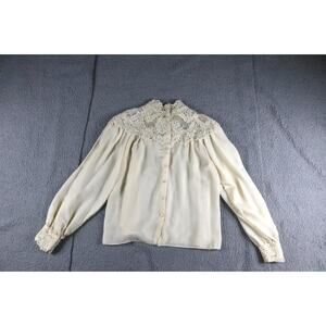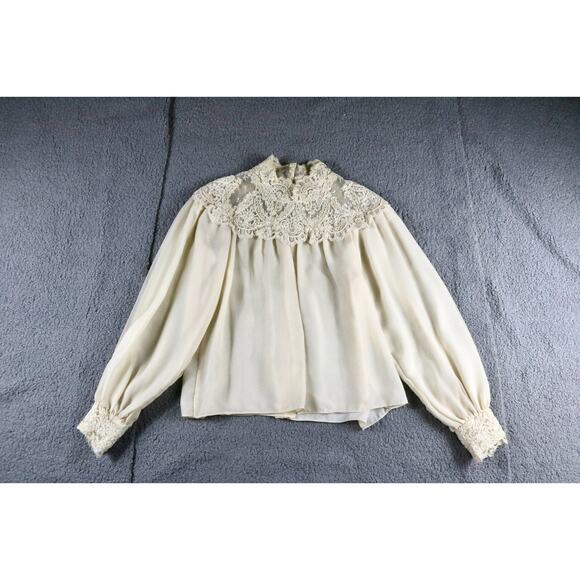Victor Costa For Neiman Marcus Blouse M Cream Beige Lace Victorian Vintage USA