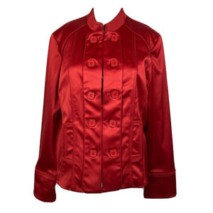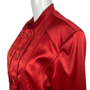 Victor Costa Jacket Blazer Womens Sz M Red Satin Stretch Button Hook Eye