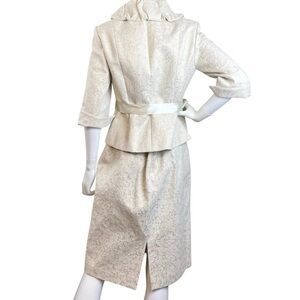 Victor Costa Jacket Skirt 2 Pc Set MOB Church Suit Cream-Ivory Shimmer Size 8