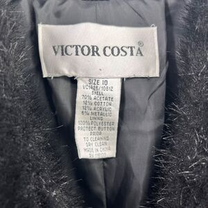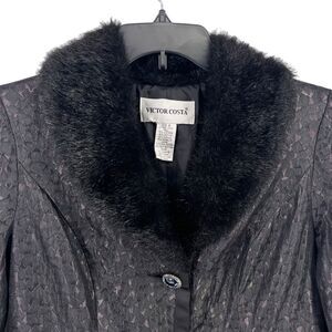Victor Costa Metallic Geometric Faux Fur Neck Jewel Button Jacket Womens Size 10