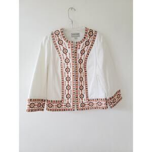 Victor Costa Occasion Embroidered Jacket White Orange Sequins Women Small