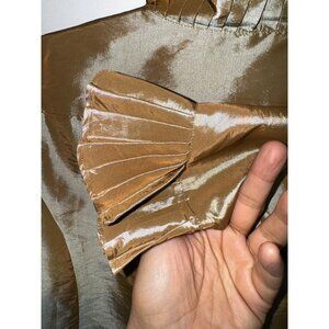 In a world where elegance meets timeless design, the Victor Costa gold ruffled jacket emerges as a beacon of luxury. Crafted meticulously, this garment dances with every movement, its shimmering fabric capturing the essence of opulence. The ruffles tell tales of sophistication, while the classic silhouette whispers versatility, ready to grace any wardrobe.