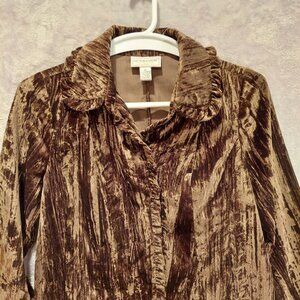 Victor Costa Occasion Velvet Jacket Womens M Brown Snaps Ruffle formal party
