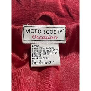 Victor Costa Occasion Women's Size Medium Leather Suede Floral Blazer Jackets Red