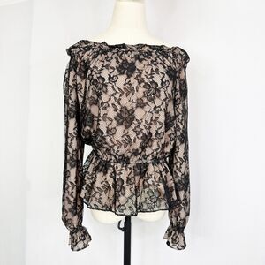 Victor Costa | Off Shoulder Black Lace Peasant Peplum Top | Sz M