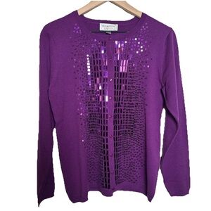 Victor Costa Purple Sequin Sweatshirt Cardigan Party Holiday