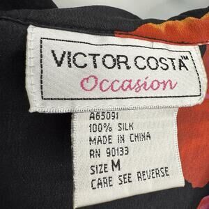 Victor Costa Silk Button Up Shirt Women size Medium Big Flower Print Long Slv