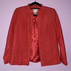 Victor Costa Size XS Blazer Coral Red Embroidered Jacket