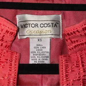 Victor Costa Size XS Linen Blazer Coral Red Embroidered Jacket