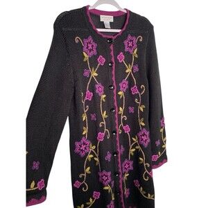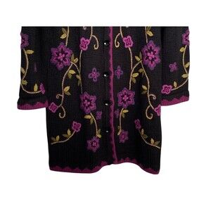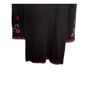 Victor Costa Sweater Dress Women's Medium Black Floral Round Neck Knee Length
