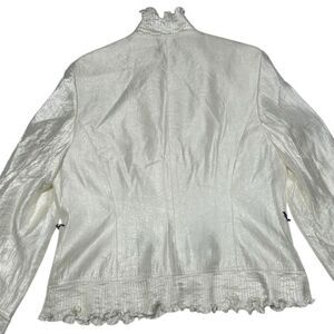 Victor Costa Vintage Ruffled Satin Blouse with Black Rhinestone Buttons Size 12