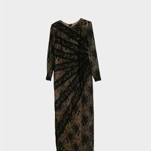 size 12, bust 38”, waist 34”, hips 40”, length 53”