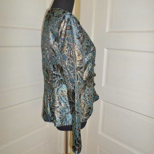 Victor Costa by Nahdree Evining Jacket Blue Brocade w/ Rhinestone Buttons