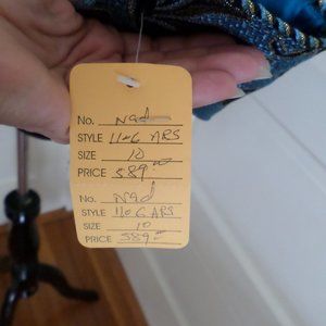 This is a Never used with Original Tags Victor Costa by Nahdree Blue Brocade Evening Jacket with Gold and Black Design and Ornate Rhinestone Buttons and Original Price $589.00