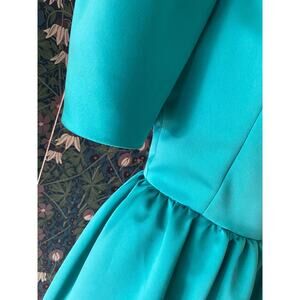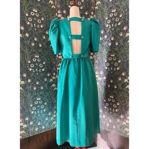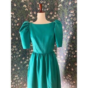Victor Costa dress with puffy sleeves and statement back in teal, size 10