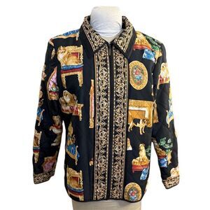 Victor Costa Women’s 100% Silk Jacket Sz. M Dogs Yorkie Beagle Shih Tzu