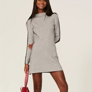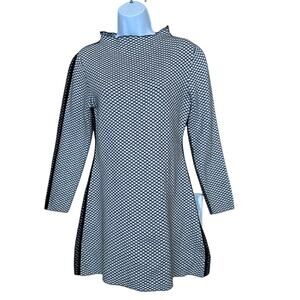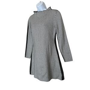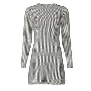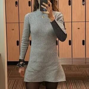 Sophisticated sweater dress cut for a mini A-line silhouette, Victor Glemaud tailors their mock neck dress in two-tones of plush cotton-cashmere knit with a diagonal checkered jacquard for a retro nod. Pull-over style. Perfect office, date night, going out, dinner date.
