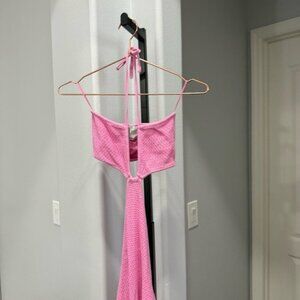 Pre-owned. Offers and bundling welcome. Repair made as shown. Beautiful pink cutout dress.