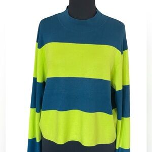 Victor Glemaud Teal Neon Lime Green Stripes Sweater Sz XL Cropped Soft Knit