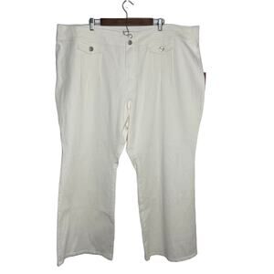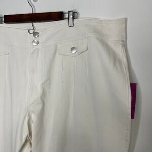 Picturing the size 24 – 26 plus size white denim slacks jeans pants wide legged fashionable by Victor Glemaud Women's High-Rise Flared Leg Jeans - Victor Glemaud Plus Size 24W/26W White Material: Please see picture of material tag in listing for details Approximate measurements laying flat: waist: 25” hips:30” rise: 15.5” inseam: 32” cuff: 13.5” . Condition: Pre-owned but unworn with tags attached, some light marks see picture shown there – most likely will easily wash out – price reflects condition. Inventory: e 14436 *** I ship quickly from a clean, smoke-free home. Don’t miss these plus size 24 – 26 white denim jeans pants slacks for women wide legged trendy for woman women’s perfect for vacation beach summer wear
