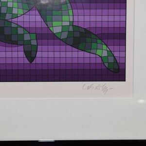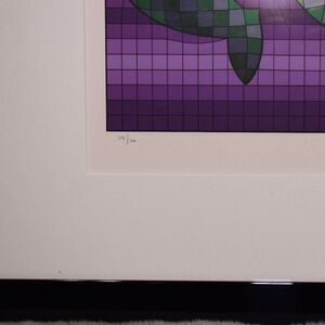 The bold geometric design and kinetic energy of Vasarely’s iconic style make this piece a true statement for any serious art collector. The colors remain bright and crisp, showcasing the precision of Vasarely’s serigraph and silkscreen process.