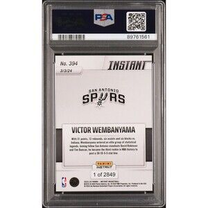 VICTOR WEMBANYAMA 2023-24 PANINI #394 NBA ROOKIE CARD 1 OF 2849 PSA 10 GEM MINT