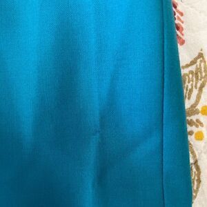 Halter dress is lined. Material is 100% wool. Measures pit to pit 18” length 23”. Dress has 2 tiny pinholes which do not affect wear.