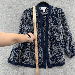 Victor Costa Occasion embroidered Jacket linen paisley Navy Blue White Sz 1X