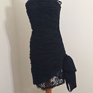 Victor Costa, Vintage 80s Designer Strapless Prom Dress Black 6