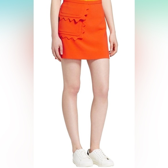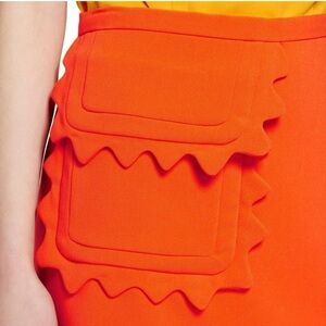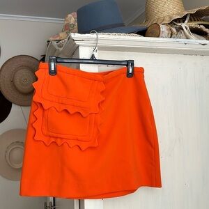 Victoria Beckham for Target orange twill fabric features a scallop trim and pockets, mini skirt size M