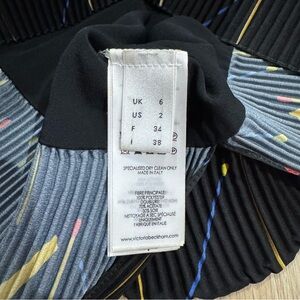 Victoria Beckham Black Blouse with Blue and Yellow Pattern