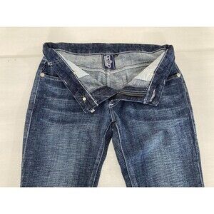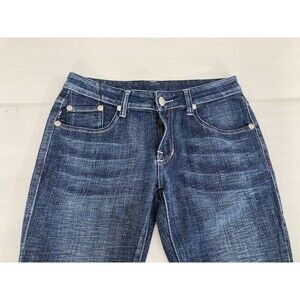 Stylish boot cut jeans. Features crown embroidery on back pockets. Perfect for casual wear.