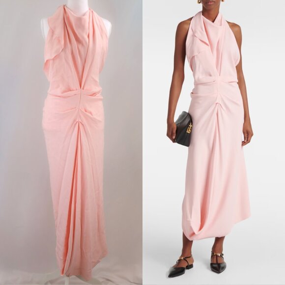 Victoria Beckham Draped Crepe Halterneck Midi Dress, Light Pink, Size US 6/IT 42