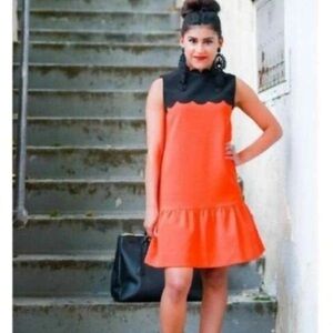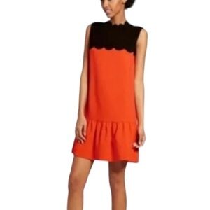 Victoria Beckham For Target Orange And Black Scalloped Sleeveless Dress